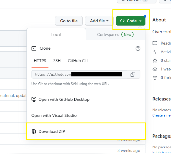 위 과정이 복잡하고 안되는 상황이라면? 가장 원초적인 방법으로 .zip 가져오기가 있다.