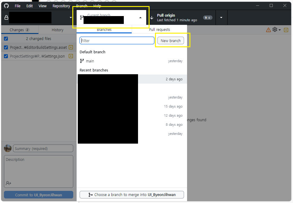 👾 깃헙 데스크탑에서 최신 상태의 브랜치 가져오기 2